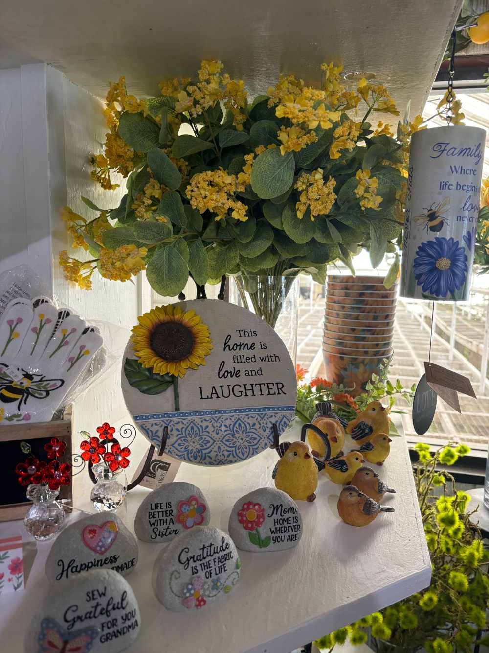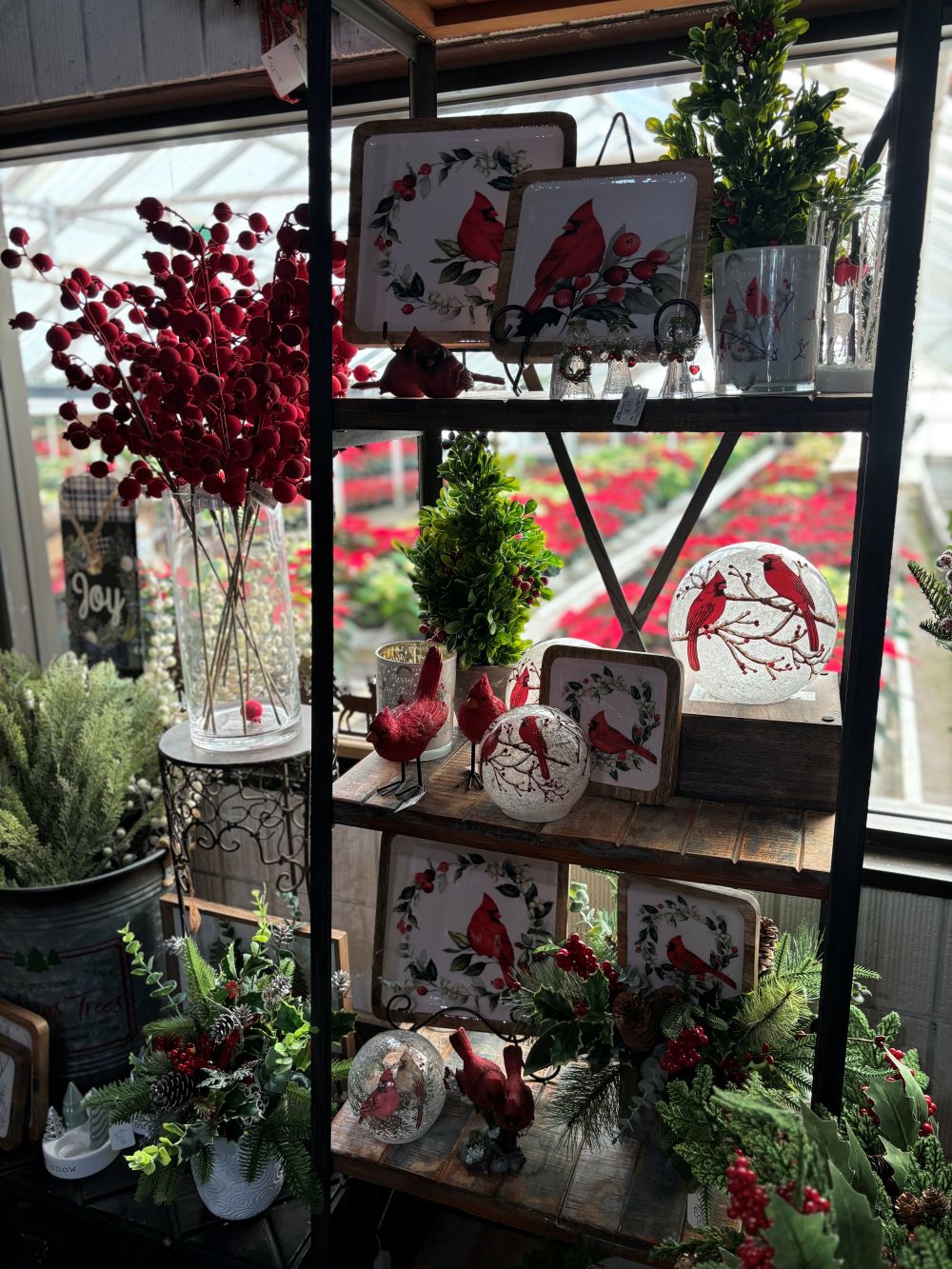 Beautiful giftware and collectibles are also a feast for the eyes ~ items changing weekly with each new season or holiday. Our updated Bereavement section has unique garden stones, angels, pictures, wind chimes and much more all with popular quotes and verses. This includes a special section loaded with cardinals!
